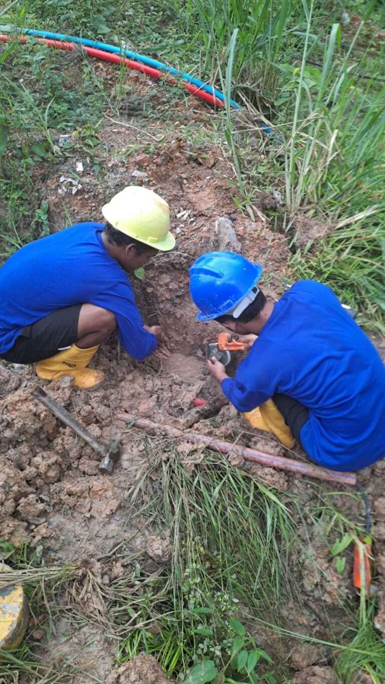 Kebocoran pipa transmisi di depan Panbil Plaza, Muka Kuning, dipastikan tidak berdampak terhadap pelanggan. Hal ini ditegaskan Direktur Badan Usaha SPAM, Fasilitas, dan Lingkungan, Iyus Rusmana, yang menyebut bahwa perbaikan
