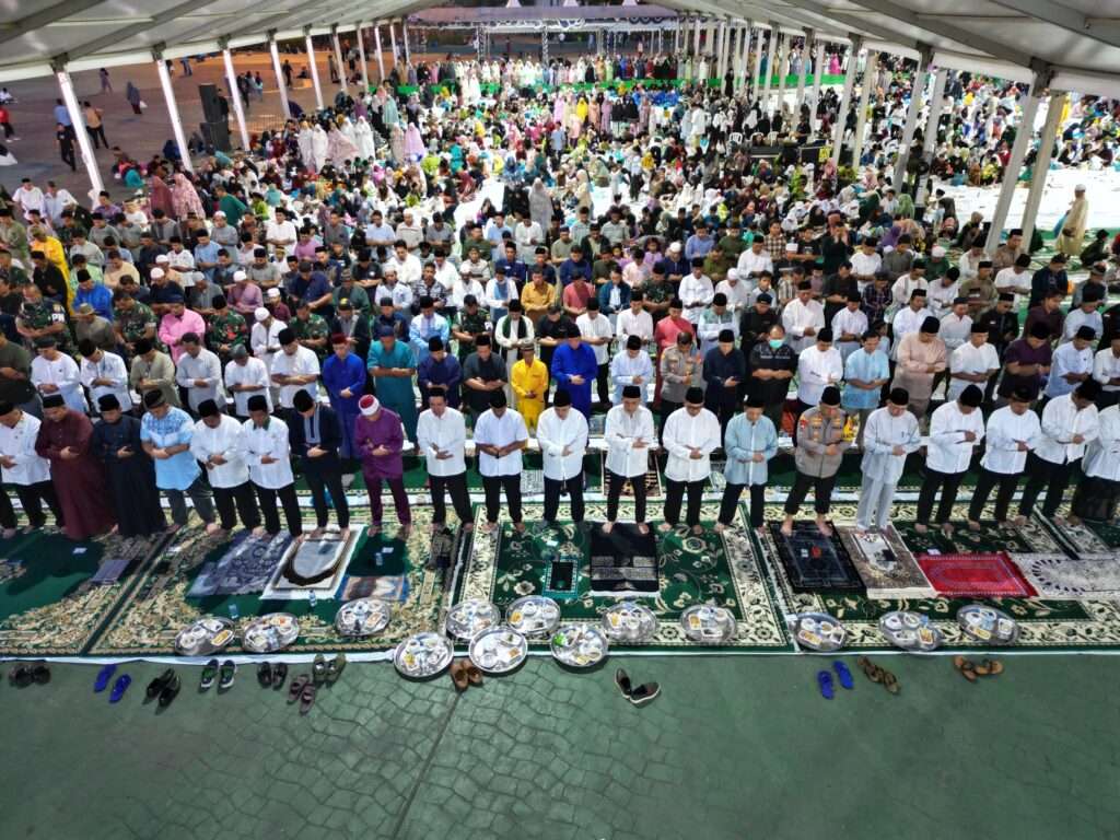 Diperkirakan hampir 20 ribuan masyarakat Kota Batam tumpah ruah menghadiri agenda buka puasa bersama dan salat berjamaah di Dataran Engku Putri, Sabtu (23/3/2024).