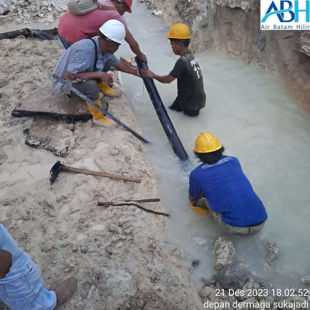Badan Usaha Sistem Pengelolaan Air Minum (BU-SPAM) BP Batam telah menyelesaikan penyambungan pipa yang bocor di depan Sukajadi, Kamis (21/12/2023). Perbaikan pipa itu selesai dalam waktu 2 jam setelah mendapatkan informasi adanya kebocoran pipa.