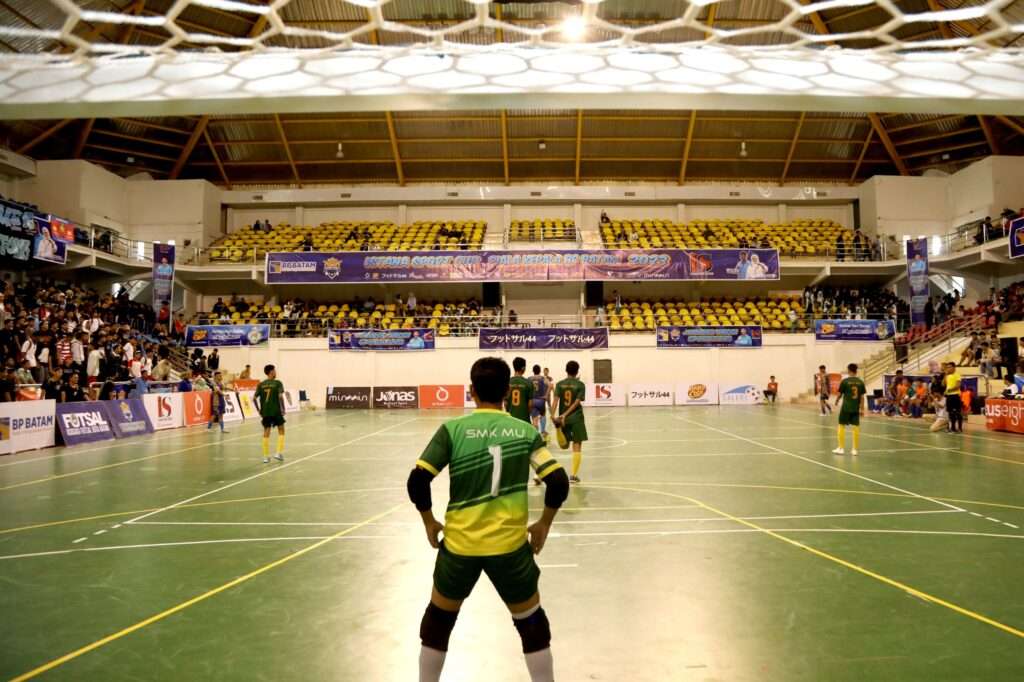 Sorak-sorai ratusan penonton di Sport Hall Temenggung Abdul Jamal menandai dimulainya turnamen futsal Istana Sport Piala Kepala BP Batam kategori pelajar, Kamis (14/12/2023).