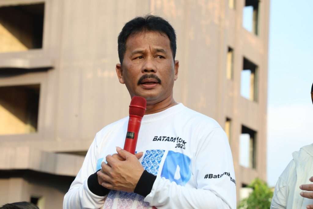 Kepala BP Batam, Muhammad Rudi, melepas ratusan peserta Maraton Batam 10 K Tahun 2023 di halaman parkir Hotel Santika Batam Center, Minggu (23/7/2023).