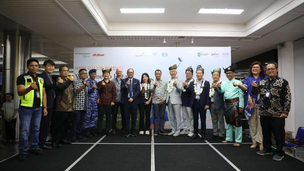 Penerbangan perdana Jeju Air 7C2775 dari Incheon Airport Korea Selatan (Korsel) menuju Bandara Internasional Hang Nadim mendapat sambutan positif dari Kepala BP Batam, Muhammad Rudi, Sabtu (20/5/2023) dinihari.