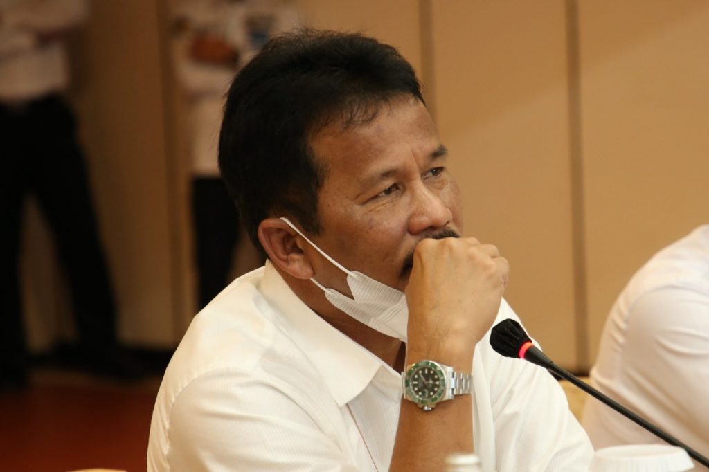 Kepala Badan Pengusahaan (BP) Batam, Muhammad Rudi, memaparkan empat agenda pembahasan atas hasil rapat koordinasi bersama Menteri Perekonomian RI, Airlangga Hartarto, Kamis (11/2/2021), di Balairung Sari BP Batam, Batam Center.