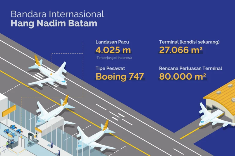 Bandara internasional dengan landasan pacu terpanjang di Indonesia, menjadi pintu utama transportasi udara dan penghubung Batam dengan kota-kota besar di Asia.