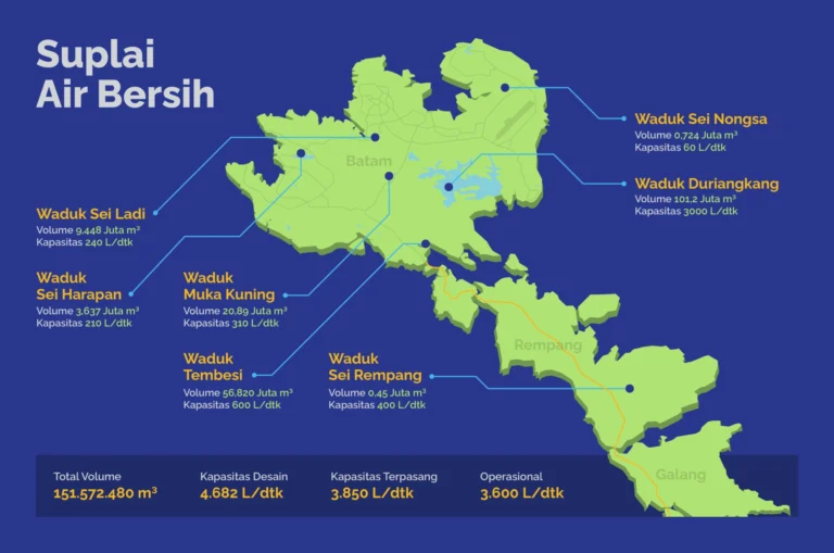 SPAM Batam mengelola sistem distribusi air bersih modern yang menjangkau seluruh pulau utama. Infrastruktur ini memastikan kebutuhan rumah tangga, fasilitas publik, pariwisata, hingga kawasan industri terpenuhi secara berkelanjutan.