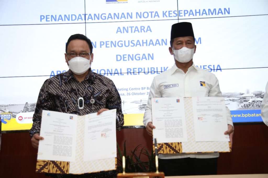 Badan Pengusahaan Batam (BP Batam) bersama Arsip Nasional Republik Indonesia (ANRI) melakukan penandatanganan perjanjian kerja sama untuk saling menunjang pelaksanaan tugas Arsip Nasional Republik Indonesia dan Badan Pengusahaan Kawasan Perdagangan Bebas dan Pelabuhan Bebas Batam, Selasa (26/10/2021) bertempat di Marketing Centre BP Batam.